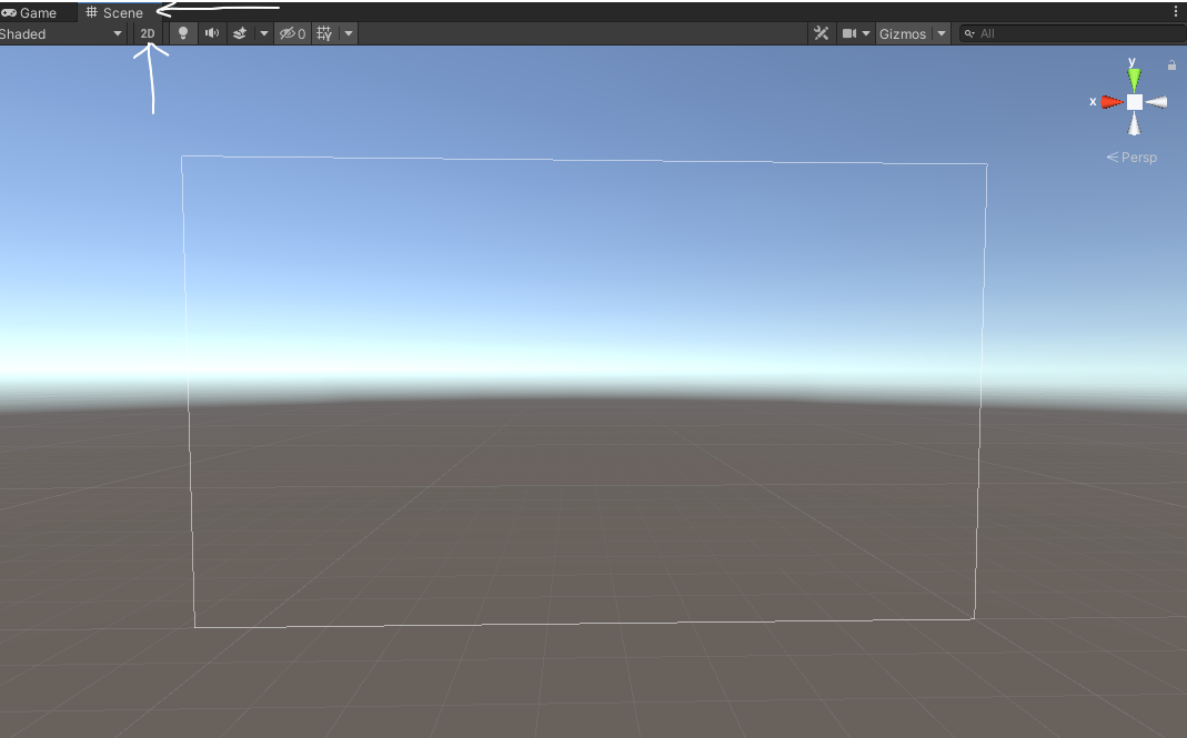 그런데 안보이면 scene창에서 2d버튼을 클릭하시면 보이실 수도 있습니다.